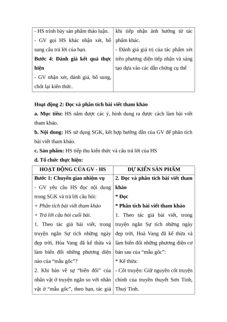 Hoạt động 2: Đọc và phân tích bài viết tham khảo