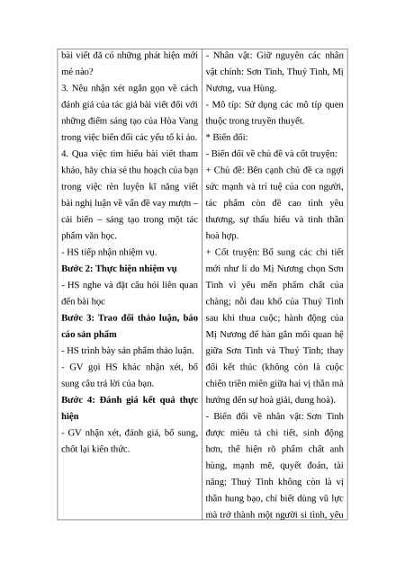 sáng tạo trong một hoặc một nhóm tác phẩm văn học) theo các bước được hướng dẫn.