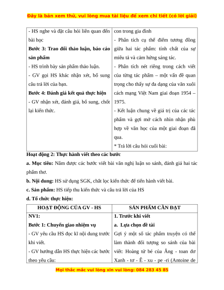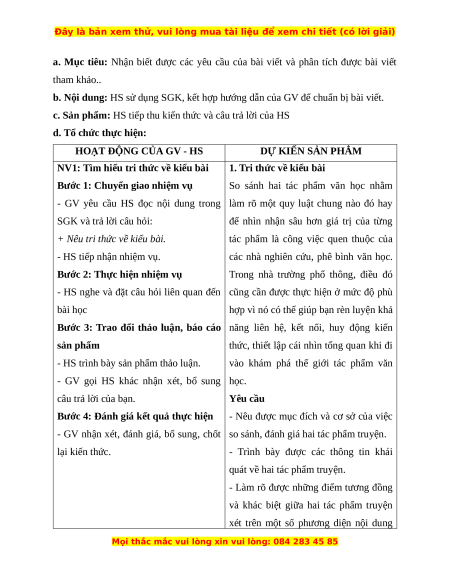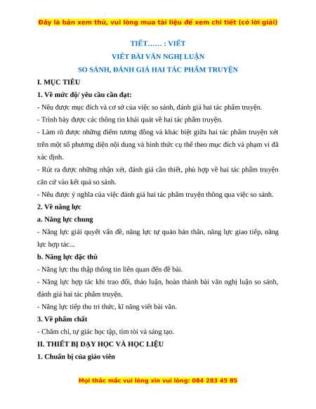 Giáo án Viết bài văn nghị luận so sánh, đánh giá hai tác phẩm truyện Ngữ Văn 12 Kết nối tri thức
