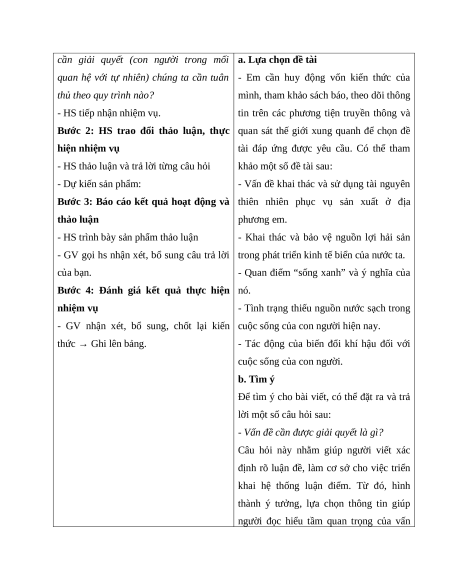 Bước 2: HS trao đổi thảo luận, thực quan sát thế giới xung quanh để chọn đề hiện nhiệm vụ
