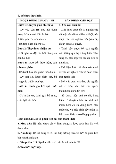 Hoạt động 2: Đọc và phân tích bài viết tham khảo
