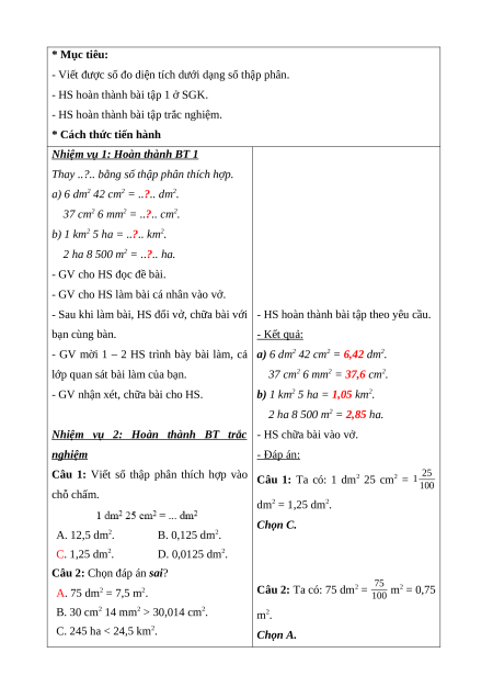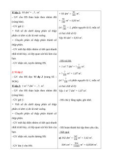 - HS viết được các số đo diện tích dưới dạng số thập phân. * Cách tiến hành: 1. Ví dụ 1