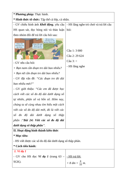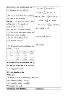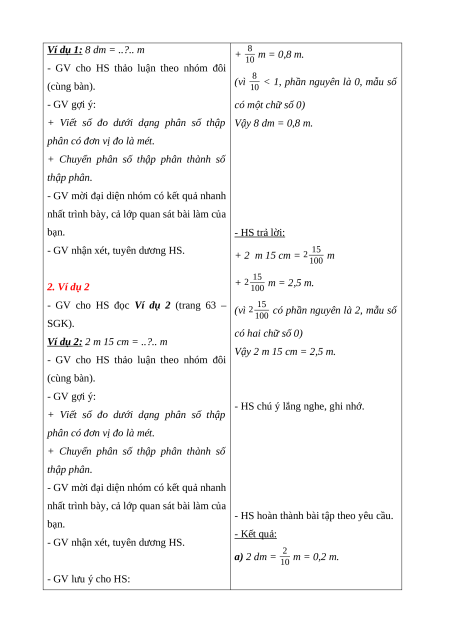 - HS viết được các số đo độ dài dưới dạng số thập phân. * Cách tiến hành: 1. Ví dụ 1