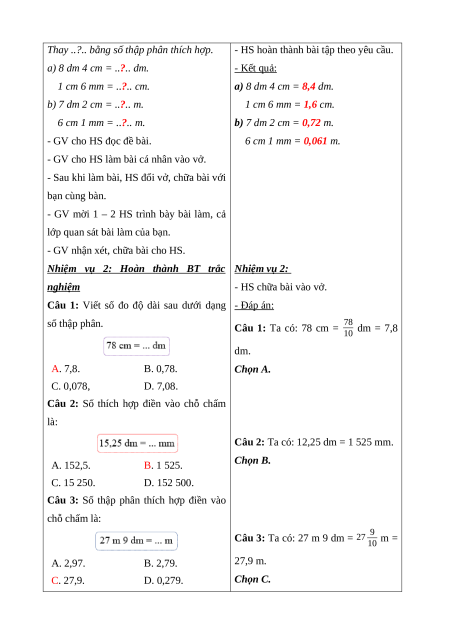 - Viết được số đo độ dài dưới dạng số thập phân.