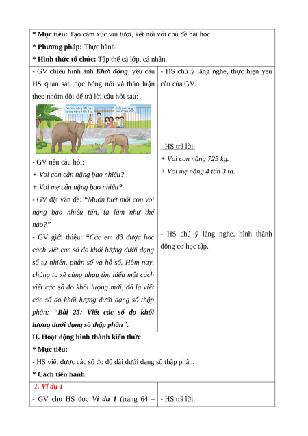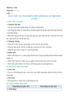 BÀI 25. VIẾT CÁC SỐ ĐO KHỐI LƯỢNG DƯỚI DẠNG SỐ THẬP PHÂN (1 TIẾT)