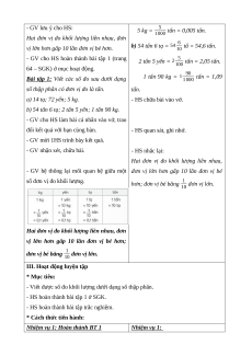 - Viết được số đo khối lượng dưới dạng số thập phân.