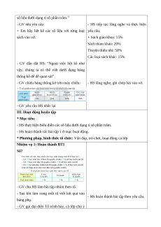 + Em hãy liệt kê các số liệu với từng loại yêu cầu. sách vào vở. + Sách giáo khoa: 15% Sách tham khảo: 20% Truyện thiếu nhi: 50% Các loại sách khác: 15%