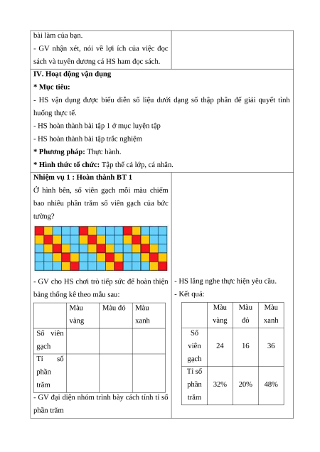 - Viết được các số liệu dưới dạng tỉ số phần trăm để hoàn thiện bảng số liệu.