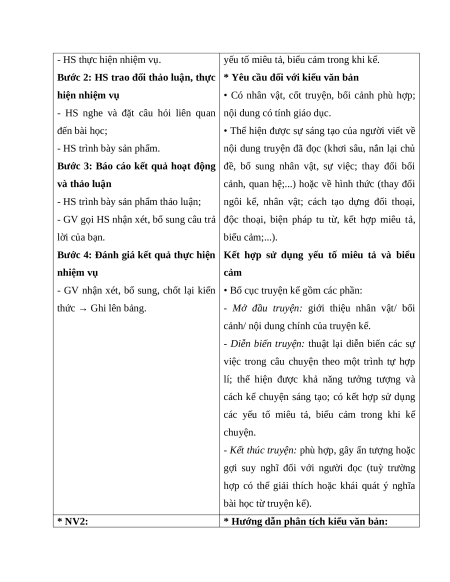 Bước 2: HS trao đổi thảo luận, thực * Yêu cầu đối với kiểu văn bản hiện nhiệm vụ