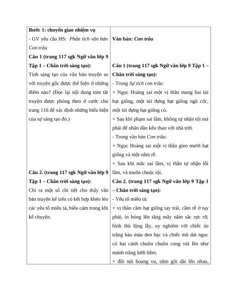 - GV yêu cầu HS: Phân tích văn bản Văn bản: Con trâu Con trâu