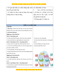 sẽ giúp HS phát tri n năng l ể c ự giao ti p ế toán h c ọ + Qua ho t ạ đ ng gi ộ i ả các bài t p có ậ tình hu ng, H ố S phát tri n năng l ể c gi ự i ả quy t ế v n đ ấ ề 3. Phẩm ch t ấ + Yêu thích h c m ọ ôn Toán, có h ng ứ thú v i ớ các con số + Phát tri n t ể duy t ư oán cho h c s ọ inh II. THIẾT B D Ị ẠY H C Ọ VÀ H C Ọ LI U Ệ M i