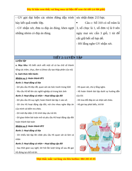 ọ GV cho HS cùng cố dẻ,... tư ng ơ ng ứ số h t ạ để sóc bài h c ọ (như yêu c u đã nêu ầ đ ở u t ầ i t ế h c) ọ . nh t ặ đư c ợ là 1 trăm, 3 ch c ụ và 2