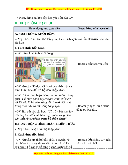 Đây là bản xem th , vu ử i lòng mua tài li u ệ đ xe ể m chi ti t (c ế ó l i ờ gi i ả ) - Vở ghi, d ng c ụ h ụ c ọ t p t ậ heo yêu c u c ầ a ủ GV. III. HOẠT Đ N Ộ G D Y Ạ H C Ọ Hoạt đ ng c ộ a gi ủ áo viên Hoạt đ ng c ộ a h ủ c s ọ inh A. HOẠT Đ N Ộ G KH I Ở Đ N Ộ G a. Mục tiêu: T o t ạ âm th h ế ng t ứ