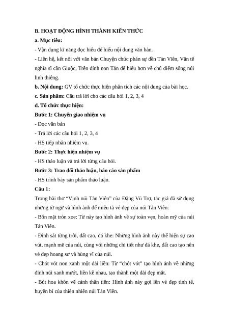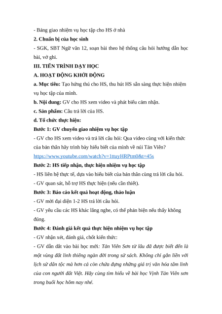 Giáo án Vịnh Tản Viên sơn Ngữ Văn 12 Chân trời sáng tạo