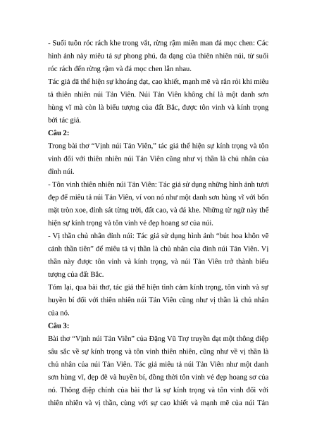 huyền bí đối với thiên nhiên núi Tản Viên cũng như vị thần là chủ nhân của nó. Câu 3: