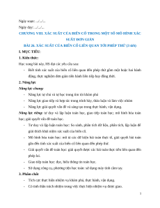 BÀI 26. XÁC SUẤT CỦA BIẾN CỐ LIÊN QUAN TỚI PHÉP THỬ (3 tiết) I. MỤC TIÊU: