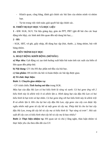 - Giải quyết vấn đề toán học: giải quyết được các bài toán thực tiễn liên quan đến phép lai.