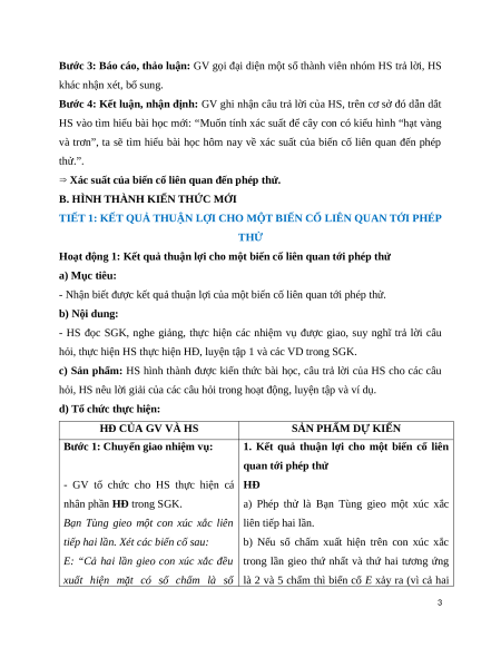 TIẾT 1: KẾT QUẢ THUẬN LỢI CHO MỘT BIẾN CỐ LIÊN QUAN TỚI PHÉP THỬ