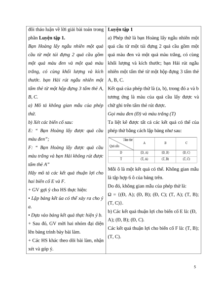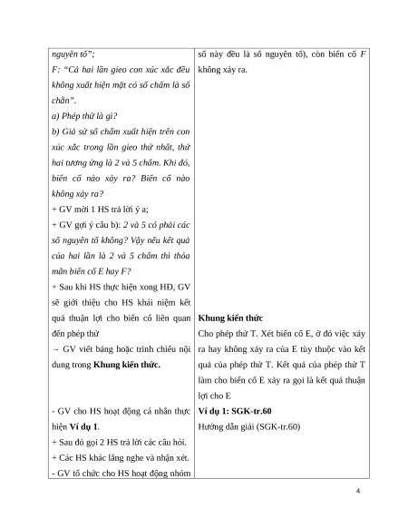 - Nhận biết được kết quả thuận lợi của một biến cố liên quan tới phép thử. b) Nội dung: