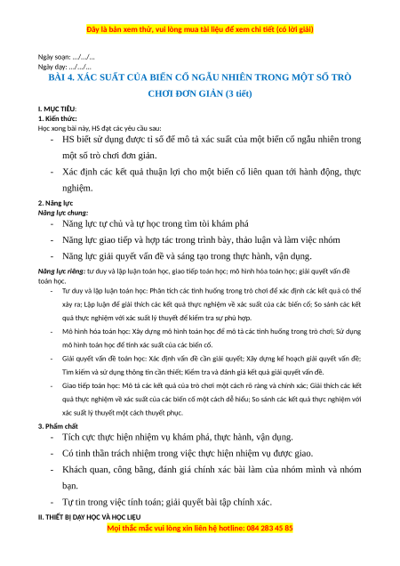BÀI 4. XÁC SUẤT CỦA BIẾN CỐ NGẪU NHIÊN TRONG MỘT SỐ TRÒ