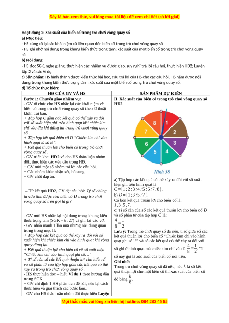 Hoạt động 2: Xác suất của biến cố trong trò chơi vòng quay số