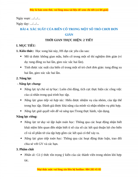 Bài 4: Xác suất của biến cố trong một số trò chơi đơn giản"