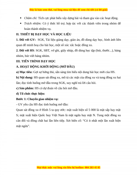 quan để minh hoạ cho bài học, một số xúc xắc hoặc đồng xu.