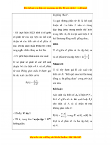 khái niệm liên quan đến nhận biết tỉ số của số các kết quả thuận lợi cho biến