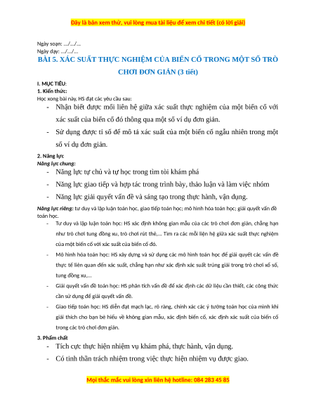 BÀI 5. XÁC SUẤT THỰC NGHIỆM CỦA BIẾN CỐ TRONG MỘT SỐ TRÒ