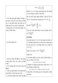 Giáo án Xác xuất có điều kiện Toán 12 Cánh diều
