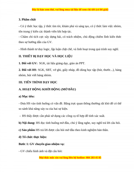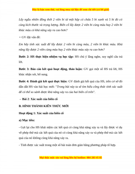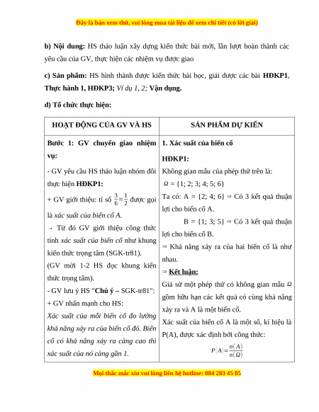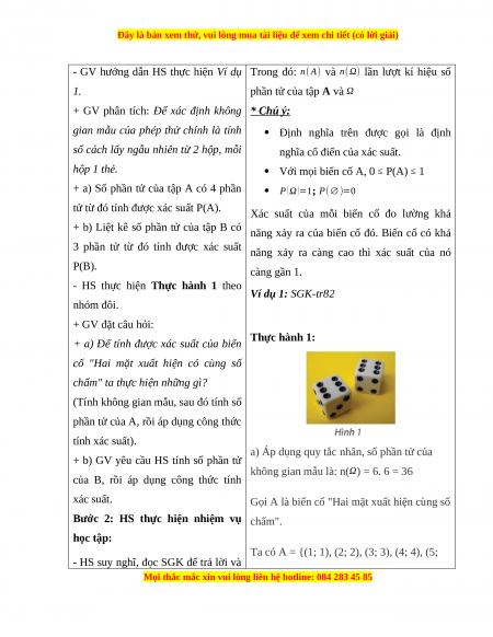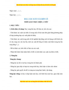 Giáo án Xác xuất của biến cố Toán 10 Chân trời sáng tạo