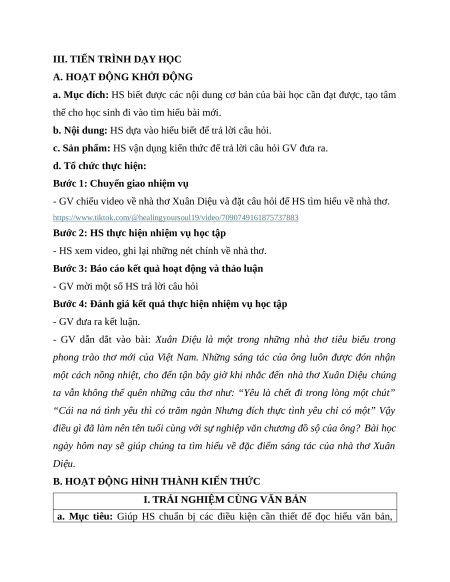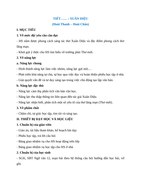 Giáo án Xuân Diệu Ngữ Văn 12 Chân trời sáng tạo