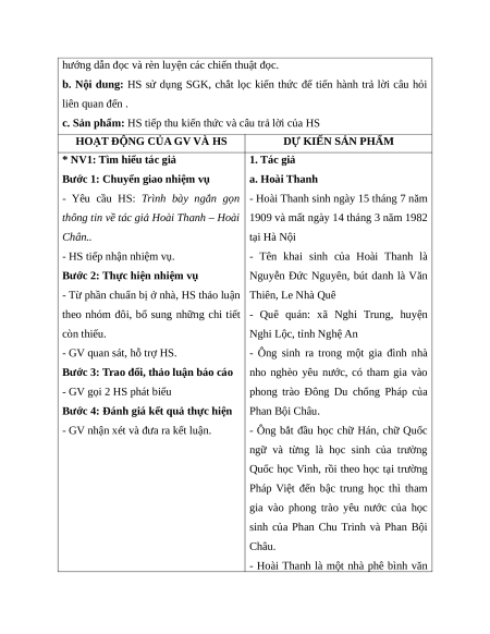 Bước 1: Chuyển giao nhiệm vụ a. Hoài Thanh