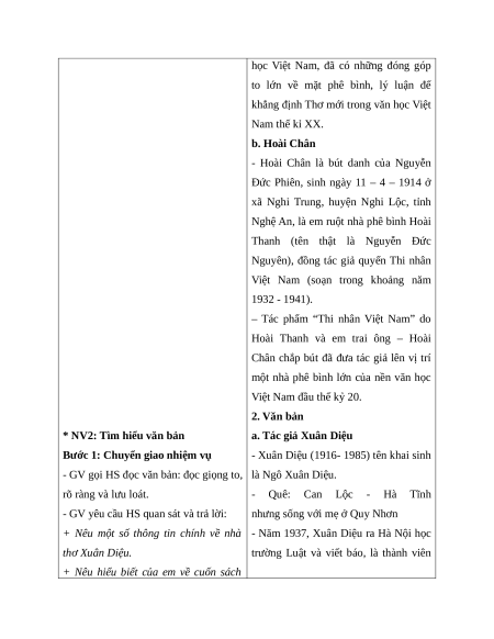 - Năng lực thu thập thông tin liên quan đến tác giả Xuân Diệu.