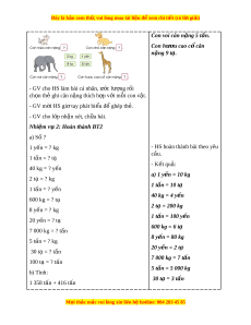 ơ “Ghép thẻ”: + GV chi u ế hình nh: ả - HS l ng nghe, t ắ h o ả lu n, ậ suy nghĩ trả l i ờ . Tr l ả i ờ : + Xe đ p ạ n ng 10 kg. ặ + Xe máy n ng 100 kg. ặ