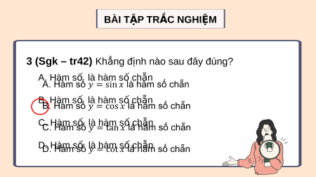3 (Sgk – tr42) Khẳng đ nh ị nào sau đây đúng? A. Hàm s l ố à hàm s ố ch n ẵ B. Hàm s l ố à hàm s ố ch n ẵ C. Hàm s ố là hàm s c ố h n ẵ D. Hàm s ố là hàm s c ố h n ẵ