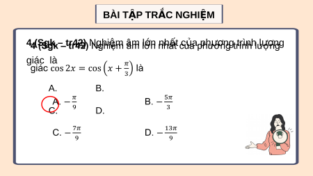 4 (Sgk – tr42) Nghi m âm l n nh t c a ph ng trình l ng ệ ớ ấ ủ ươ ượ