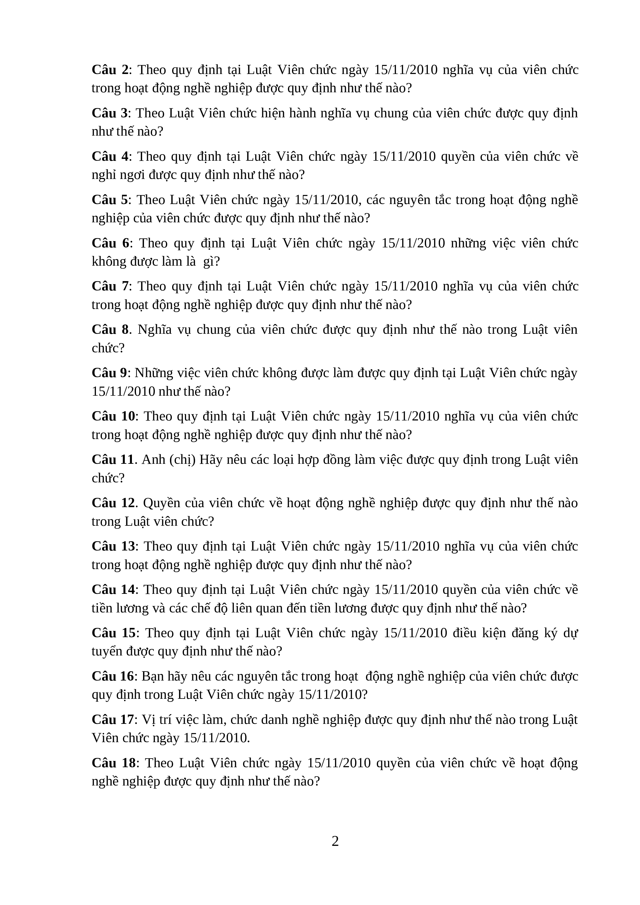 Câu 2: Theo quy định tại Luật Viên chức ngày 15/11/2010 nghĩa vụ của viên chức