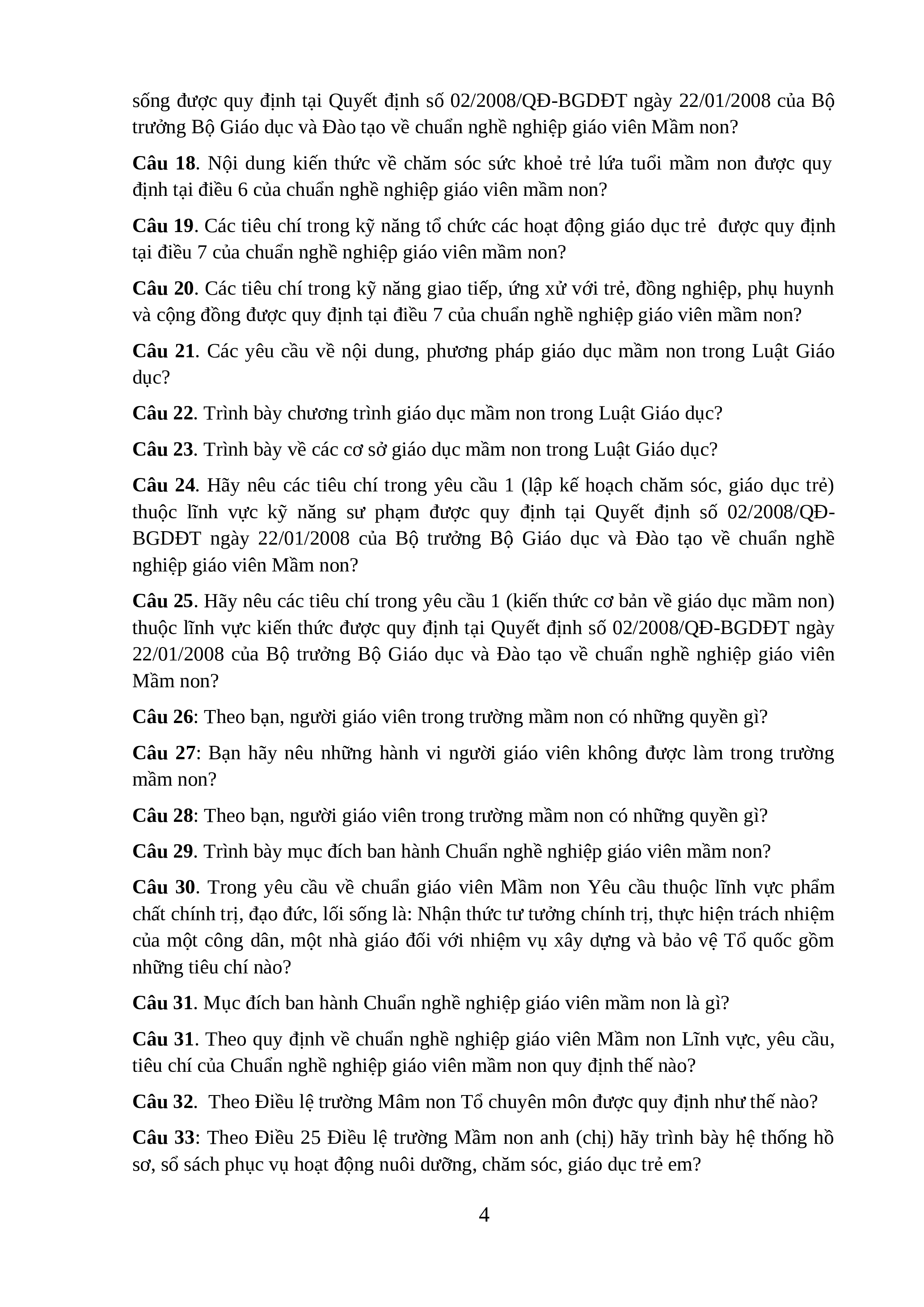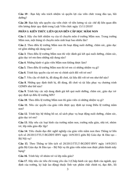 Câu 10. Theo điều lệ trường Mầm non thì giáo viên có những nhiệm vụ gì?