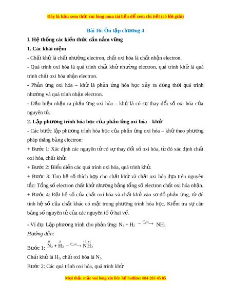 Đây là bản xem th , vu ử i lòng mua tài li u ệ đ xe ể m chi ti t (c ế ó l i ờ gi i ả ) Bài 16: Ôn t p ch ậ ư ng ơ 4 I. H t ệ h ng các ố ki n t ế h c c ứ n n ầ m ắ v ng ữ 1. Các khái ni m ệ - Chất kh l ử à ch t ấ như ng el ờ ectron, ch t ấ oxi hóa là ch t ấ nh n ậ electron.