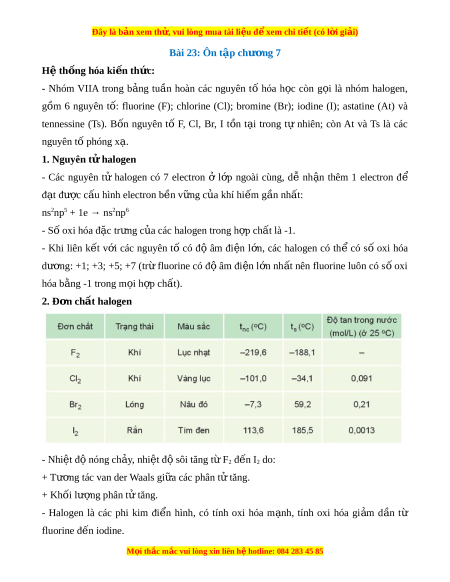 Đây là bản xem th , vu ử i lòng mua tài li u ệ đ xe ể m chi ti t (c ế ó l i ờ gi i ả ) Bài 23: Ôn t p ch ậ ư ng ơ 7 H t ệ h ng hóa ki ố n t ế h c ứ : - Nhóm VIIA trong b ng ả tu n