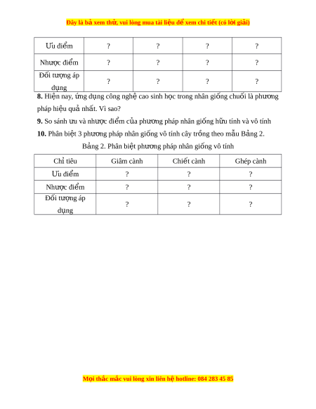 ử vui lòng mua tài li u ệ đ xe ể m chi ti t ế (có l i ờ gi i ả ) Ưu đi m ể ? ? ? ? Như c đi ợ m ể ? ? ? ? Đ i ố tư ng ợ áp ? ? ? ? d ng ụ 8. Hi n nay ệ , ng d ứ ng ụ công ngh cao s ệ inh h c ọ trong nhân gi ng chu ố i ố là phư ng ơ