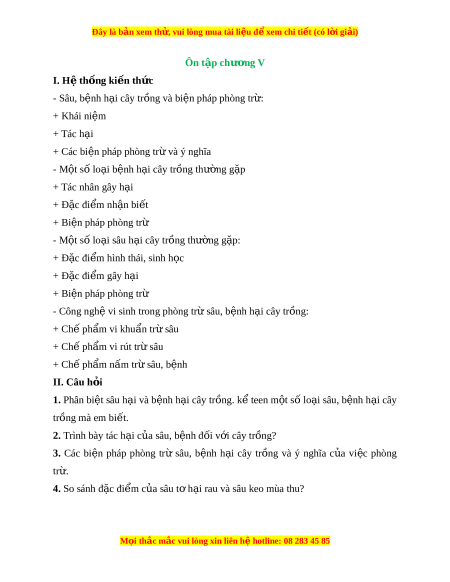 Đây là bản xem th , vu ử i lòng mua tài li u ệ đ xe ể m chi ti t (c ế ó l i ờ gi i ả ) Ôn t p ch ậ ư ng ơ V I. H t ệ h ng ki ố n t ế h c ứ - Sâu, b nh h ệ i