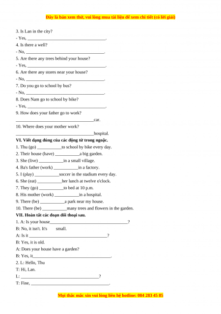 B: Yes, it___________________________________. 2. L: Hello, Thu T: Hi, Lan.