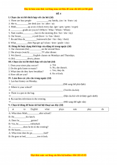 Học kỳ 1: Phần 2 Một số đề kiểm tra học kỳ 1 - Mục B- Đề kiểm tra 1 tiết số 4 -Giáo viên Mai Lan Hương đầy đủ đáp án