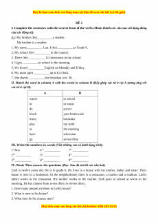 Học kỳ 1: Phần 2 Một số đề kiểm tra học kỳ 1 - Mục B- Đề kiểm tra học kì số 2 -Giáo viên Mai Lan Hương đầy đủ đáp án