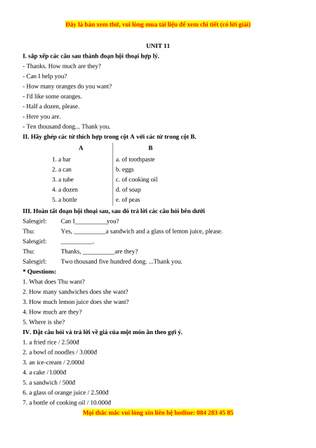 III. Hoàn tất đoạn hội thoại sau, sau đó trả lời các câu hỏi bên dưới Salesgirl: Can I__________you? Thu: