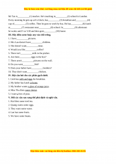 II. Hãy điền mạo từ (a, an hoặc the) vào chỗ trống nếu cần thiết.