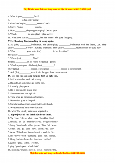 III. Đặt câu theo các từ hoặc nhóm từ được gợi ý, dùng thì hiện tại đơn (Simple present tense) của