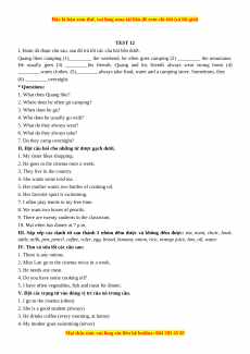_________warm clothes. (5)_________always take food, water and a camping stove. Sometimes, they (6) _________overnight. * Questions: 1. What does Quang like?